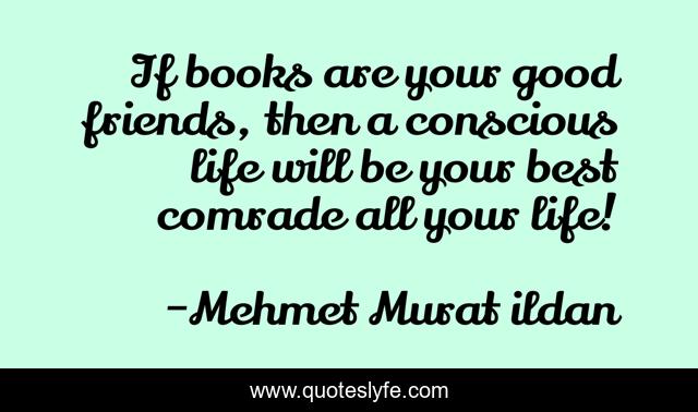 This page presents the quote "If books are your good friends, then a conscious life will be your best comrade all your life!". Author of this quote is Mehmet Murat ildan. This quote is about comrade, conscious-life, life, good-friends, book, books,.