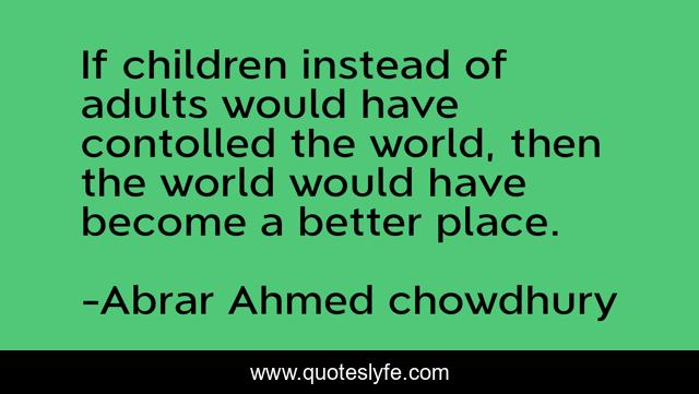 This page presents the quote "If children instead of adults would have contolled the world, then the world would have become a better place.". Author of this quote is Abrar Ahmed chowdhury. .