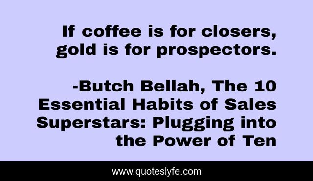 "Butch Bellah, The 10 Essential Habits of Sales Superstars: Plugging into the Power of Ten Quotes." Quoteslyfe.com, 2025. Sat. 06 Dec. 2025. <https://www.quoteslyfe.com/quote/If-coffee-is-for-closers-gold-is-252165>.