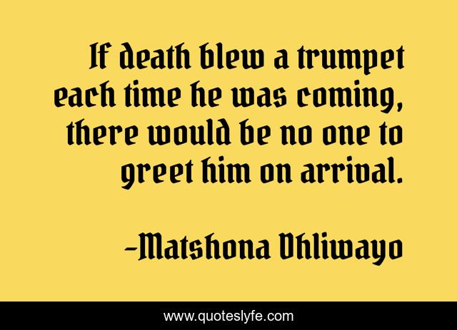 "Matshona Dhliwayo Quotes." Quoteslyfe.com, 2025. Fri. 05 Dec. 2025. <https://www.quoteslyfe.com/quote/If-death-blew-a-trumpet-each-time-57670>.