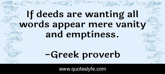 This page presents the quote "If deeds are wanting all words appear mere vanity and emptiness.". Author of this quote is Greek proverb. This quote is about going, getting,.