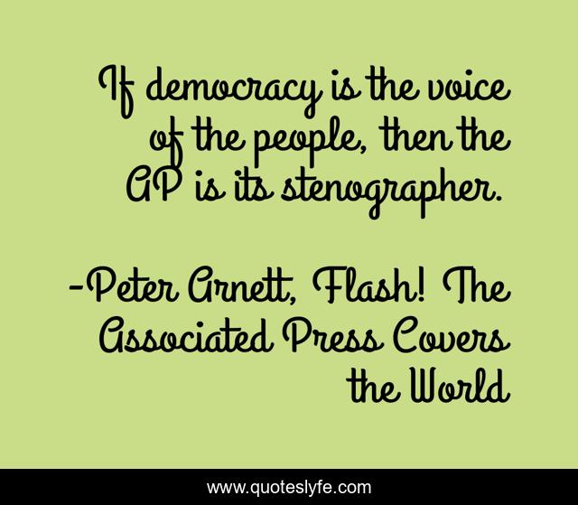 "Peter Arnett, Flash! The Associated Press Covers the World Quotes." Quoteslyfe.com, 2025. Mon. 08 Dec. 2025. <https://www.quoteslyfe.com/quote/If-democracy-is-the-voice-of-the-200206>.