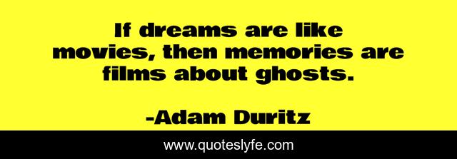 This page presents the quote "If dreams are like movies, then memories are films about ghosts.". Author of this quote is Adam Duritz. This quote is about memories, ghosts, movies,.