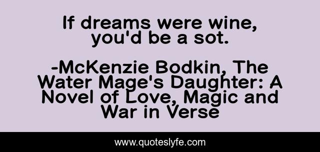 This page presents the quote "If dreams were wine, you'd be a sot.". Author of this quote is McKenzie Bodkin, The Water Mage's Daughter: A Novel of Love, Magic and War in Verse. .