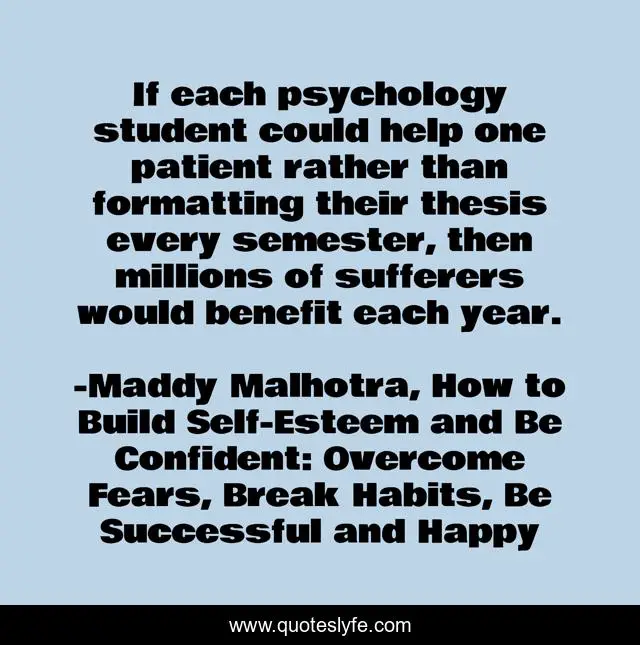 "Maddy Malhotra, How to Build Self-Esteem and Be Confident: Overcome Fears, Break Habits, Be Successful and Happy Quotes." Quoteslyfe.com, 2025. Fri. 05 Dec. 2025. <https://www.quoteslyfe.com/quote/If-each-psychology-student-could-help-one-200826>.