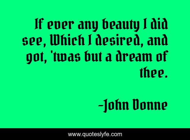 This page presents the quote "If ever any beauty I did see, Which I desired, and got, 'twas but a dream of thee.". Author of this quote is John Donne. This quote is about love, beauty, affection,.