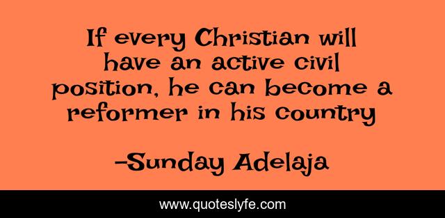 This page presents the quote "If every Christian will have an active civil position, he can become a reformer in his country". Author of this quote is Sunday Adelaja. This quote is about christian, civil, country, reformer, active, position,.