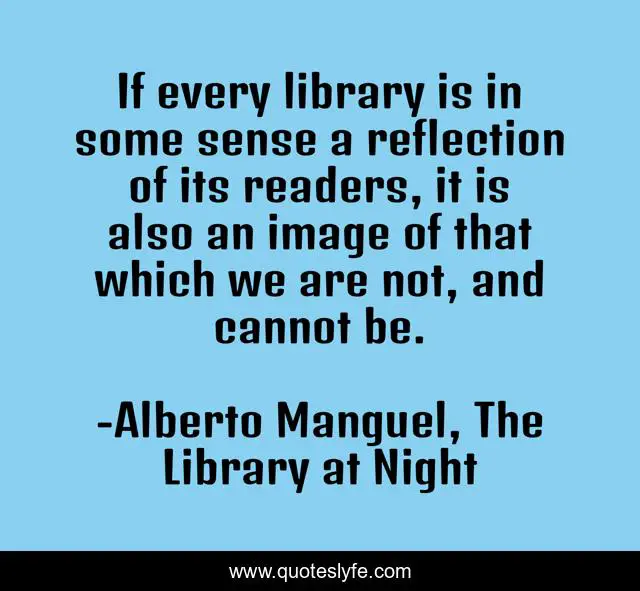This page presents the quote "If every library is in some sense a reflection of its readers, it is also an image of that which we are not, and cannot be.". Author of this quote is Alberto Manguel, The Library at Night. This quote is about books, reflection, library, readers,.