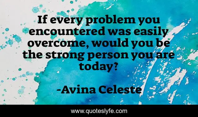 This page presents the quote "If every problem you encountered was easily overcome, would you be the strong person you are today?". Author of this quote is Avina Celeste. This quote is about confidence, strength, positive, motivational, problems, optimistic, inspirational, enthusiasm,.