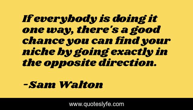 This page presents the quote "If everybody is doing it one way, there's a good chance you can find your niche by going exactly in the opposite direction.". Author of this quote is Sam Walton. This quote is about direction, good,.