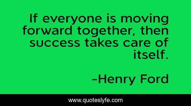 This page presents the quote "If everyone is moving forward together, then success takes care of itself.". Author of this quote is Henry Ford. This quote is about positive, confidence, motivational, optimistic,.