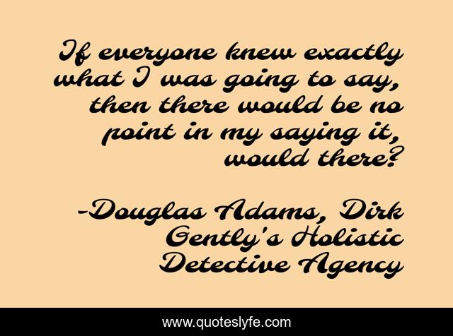 This page presents the quote "If everyone knew exactly what I was going to say, then there would be no point in my saying it, would there?". Author of this quote is Douglas Adams, Dirk Gently's Holistic Detective Agency. .