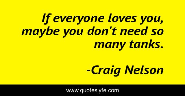 This page presents the quote "If everyone loves you, maybe you don't need so many tanks.". Author of this quote is Craig Nelson. This quote is about military, militarism-war, foreign-policy, blowback, militarism,.