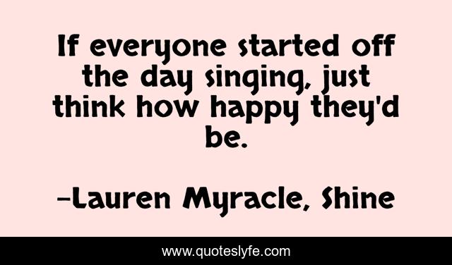 This page presents the quote "If everyone started off the day singing, just think how happy they'd be.". Author of this quote is Lauren Myracle, Shine. This quote is about music, life, singing, songs,.