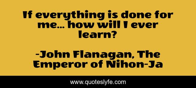 This page presents the quote "If everything is done for me... how will I ever learn?". Author of this quote is John Flanagan, The Emperor of Nihon-Ja. .