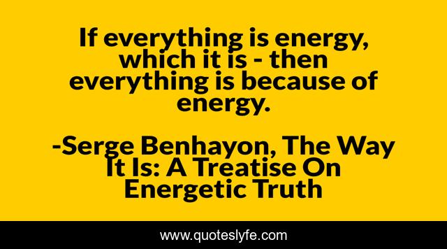 This page presents the quote "If everything is energy, which it is - then everything is because of energy.". Author of this quote is Serge Benhayon, The Way It Is: A Treatise On Energetic Truth. This quote is about universal-truth, energy, esoteric, universal-mind,.