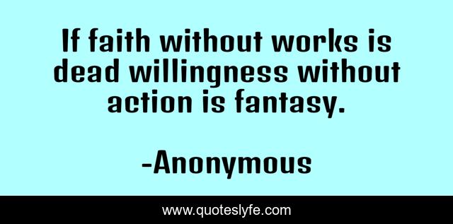 This page presents the quote "If faith without works is dead willingness without action is fantasy.". Author of this quote is Anonymous. .
