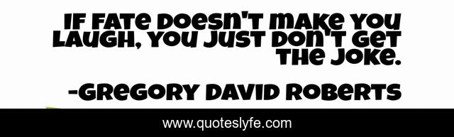 This page presents the quote "If fate doesn't make you laugh, you just don't get the joke.". Author of this quote is Gregory David Roberts. This quote is about sense-of-humor, life,.