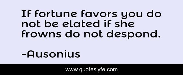 This page presents the quote "If fortune favors you do not be elated if she frowns do not despond.". Author of this quote is Ausonius. This quote is about fortune, she,.