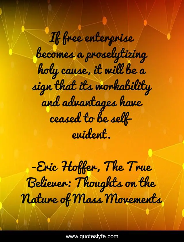 "Eric Hoffer, The True Believer: Thoughts on the Nature of Mass Movements Quotes." Quoteslyfe.com, 2025. Fri. 05 Dec. 2025. <https://www.quoteslyfe.com/quote/If-free-enterprise-becomes-a-proselytizing-holy-204904>.