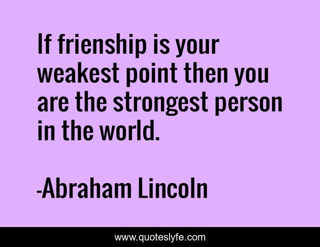 This page presents the quote "If frienship is your weakest point then you are the strongest person in the world.". Author of this quote is Abraham Lincoln. .