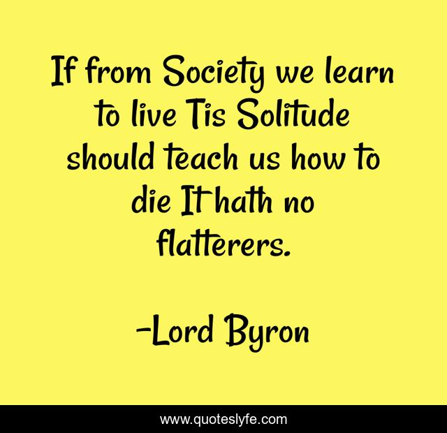 This page presents the quote "If from Society we learn to live Tis Solitude should teach us how to die It hath no flatterers.". Author of this quote is Lord Byron. .