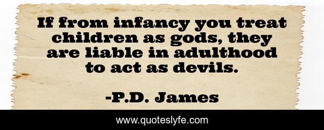 This page presents the quote "If from infancy you treat children as gods, they are liable in adulthood to act as devils.". Author of this quote is P.D. James. This quote is about p-d-james, childhood, child-rearing,.