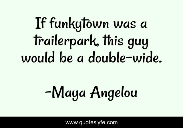 This page presents the quote "If funkytown was a trailerpark, this guy would be a double-wide.". Author of this quote is Maya Angelou. .