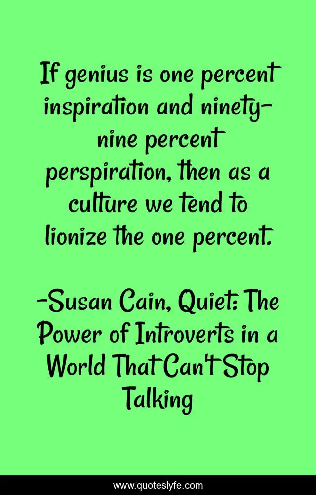 "Susan Cain, Quiet: The Power of Introverts in a World That Can't Stop Talking Quotes." Quoteslyfe.com, 2025. Tue. 09 Dec. 2025. <https://www.quoteslyfe.com/quote/If-genius-is-one-percent-inspiration-and-230288>.