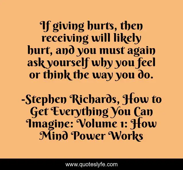 "Stephen Richards, How to Get Everything You Can Imagine: Volume 1: How Mind Power Works Quotes." Quoteslyfe.com, 2025. Fri. 05 Dec. 2025. <https://www.quoteslyfe.com/quote/If-giving-hurts-then-receiving-will-likely-164723>.