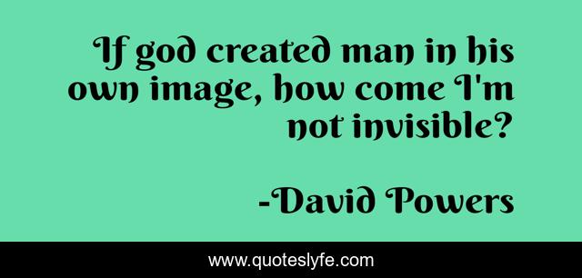 This page presents the quote "If god created man in his own image, how come I'm not invisible?". Author of this quote is David Powers. .