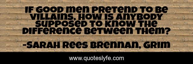 "Sarah Rees Brennan, Grim Quotes." Quoteslyfe.com, 2025. Mon. 08 Dec. 2025. <https://www.quoteslyfe.com/quote/If-good-men-pretend-to-be-villains-246757>.