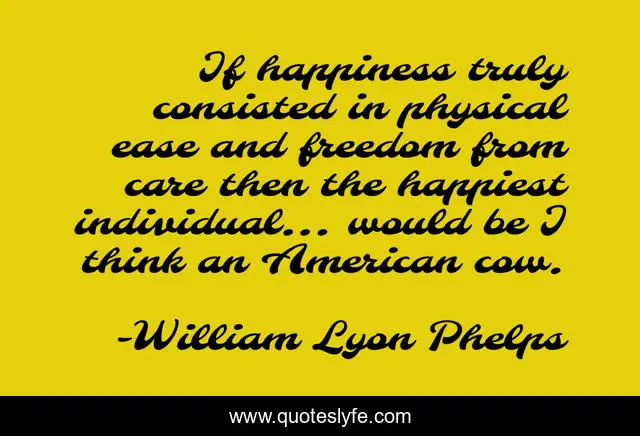 This page presents the quote "If happiness truly consisted in physical ease and freedom from care then the happiest individual... would be I think an American cow.". Author of this quote is William Lyon Phelps. .
