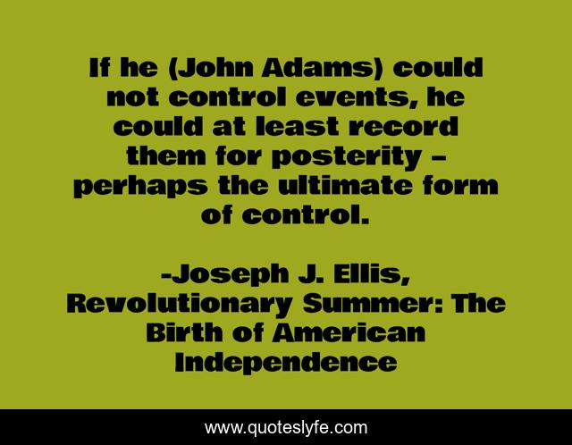 This page presents the quote "If he (John Adams) could not control events, he could at least record them for posterity – perhaps the ultimate form of control.". Author of this quote is Joseph J. Ellis, Revolutionary Summer: The Birth of American Independence. This quote is about history, journalism, perspective, writing,.