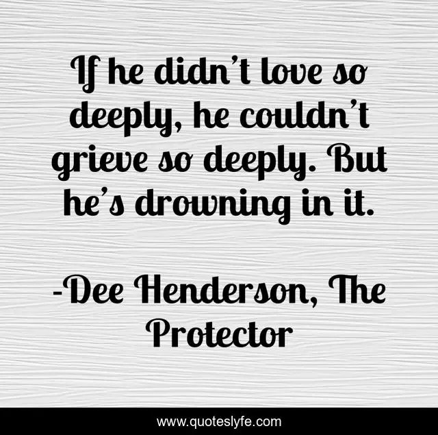 This page presents the quote "If he didn’t love so deeply, he couldn’t grieve so deeply. But he’s drowning in it.". Author of this quote is Dee Henderson, The Protector. This quote is about love, o-malley, grief, inspirational, enthusiasm, affection,.