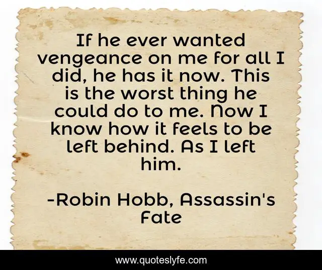 "Robin Hobb, Assassin's Fate Quotes." Quoteslyfe.com, 2025. Sat. 06 Dec. 2025. <https://www.quoteslyfe.com/quote/If-he-ever-wanted-vengeance-on-me-203750>.