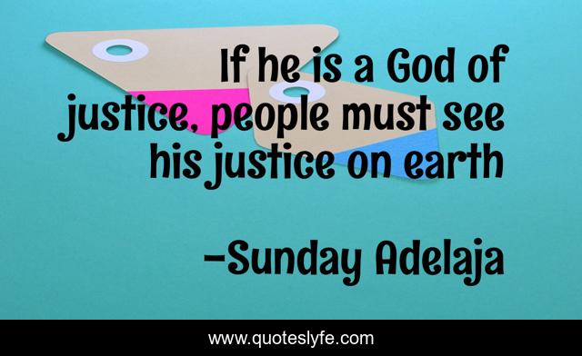 This page presents the quote "If he is a God of justice, people must see his justice on earth". Author of this quote is Sunday Adelaja. This quote is about good, people, justice, see, earth, if, he,.