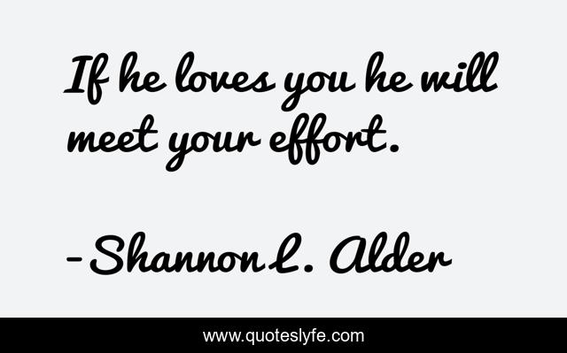 This page presents the quote "If he loves you he will meet your effort.". Author of this quote is Shannon L. Alder. This quote is about love, expectations, affection, one-sided,.