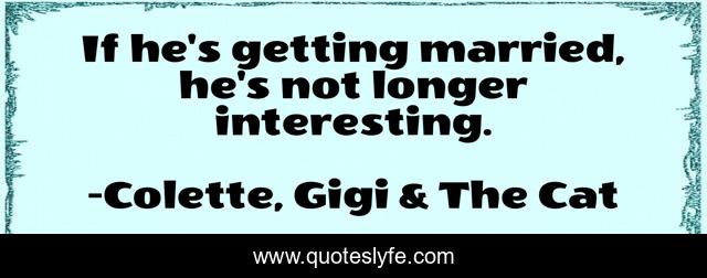 This page presents the quote "If he's getting married, he's not longer interesting.". Author of this quote is Colette, Gigi & The Cat. This quote is about humor, men, marriage,.