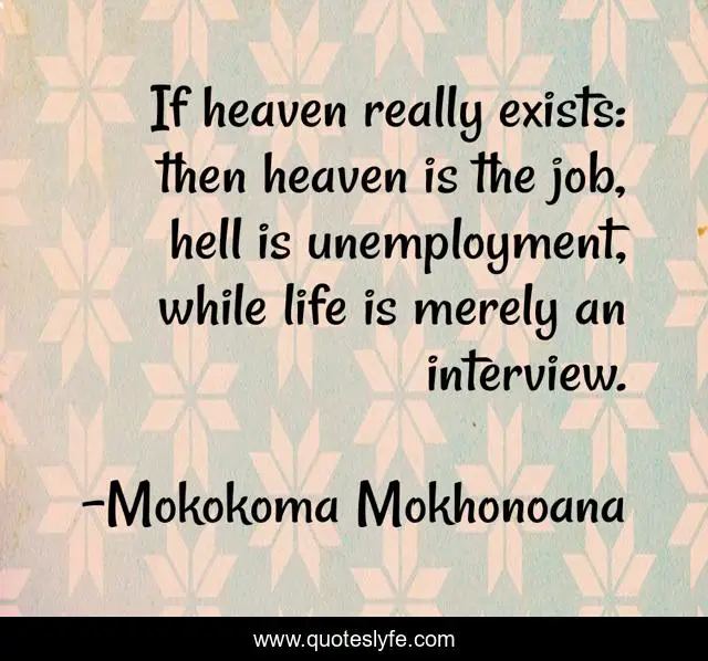 "Mokokoma Mokhonoana Quotes." Quoteslyfe.com, 2025. Fri. 05 Dec. 2025. <https://www.quoteslyfe.com/quote/If-heaven-really-exists-then-heaven-is-183671>.