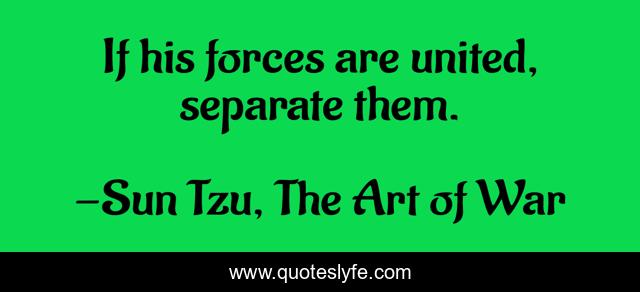 "Sun Tzu, The Art of War Quotes." Quoteslyfe.com, 2025. Sun. 07 Dec. 2025. <https://www.quoteslyfe.com/quote/If-his-forces-are-united-separate-them-129055>.