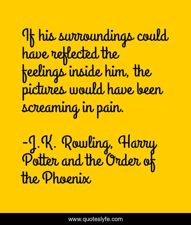This page presents the quote "If his surroundings could have reflected the feelings inside him, the pictures would have been screaming in pain.". Author of this quote is J.K. Rowling, Harry Potter and the Order of the Phoenix. This quote is about sirius-black, death, harry-potter, sad,.