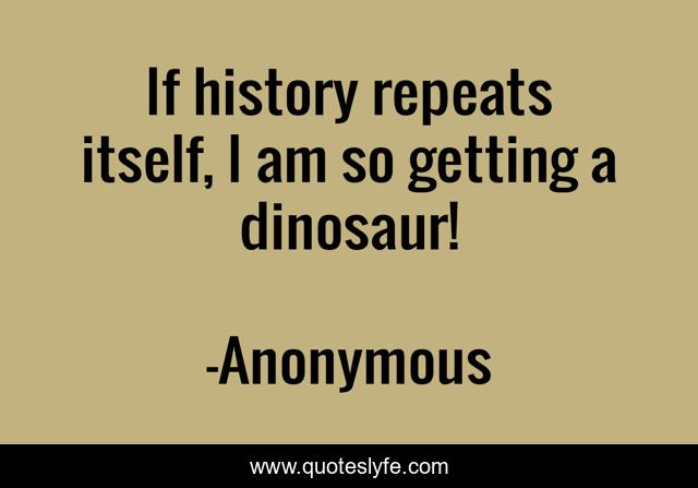 This page presents the quote "If history repeats itself, I am so getting a dinosaur!". Author of this quote is Anonymous. This quote is about humorous, dinosaurs, children, children-s,.