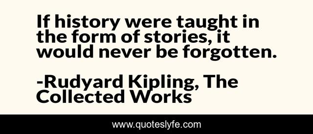 This page presents the quote "If history were taught in the form of stories, it would never be forgotten.". Author of this quote is Rudyard Kipling, The Collected Works. This quote is about storytelling, history,.