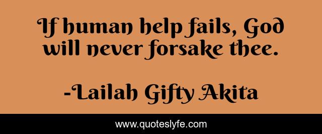 This page presents the quote "If human help fails, God will never forsake thee.". Author of this quote is Lailah Gifty Akita. This quote is about needy, god, difficulties, provision, help,.