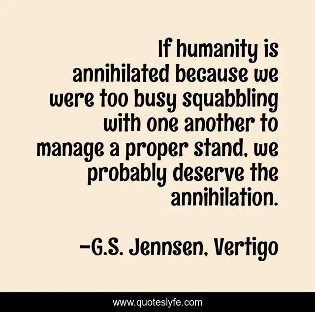 "G.S. Jennsen, Vertigo Quotes." Quoteslyfe.com, 2025. Fri. 05 Dec. 2025. <https://www.quoteslyfe.com/quote/If-humanity-is-annihilated-because-we-were-151796>.