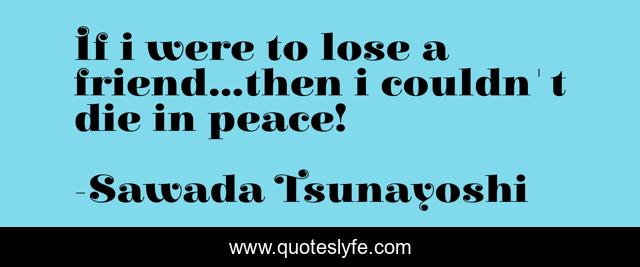 This page presents the quote "If i were to lose a friend...then i couldn't die in peace!". Author of this quote is Sawada Tsunayoshi. .