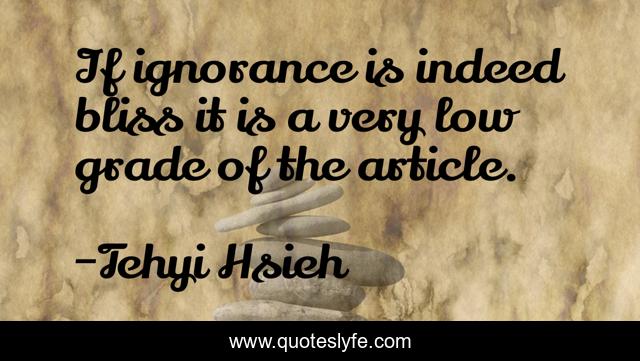 This page presents the quote "If ignorance is indeed bliss it is a very low grade of the article.". Author of this quote is Tehyi Hsieh. .