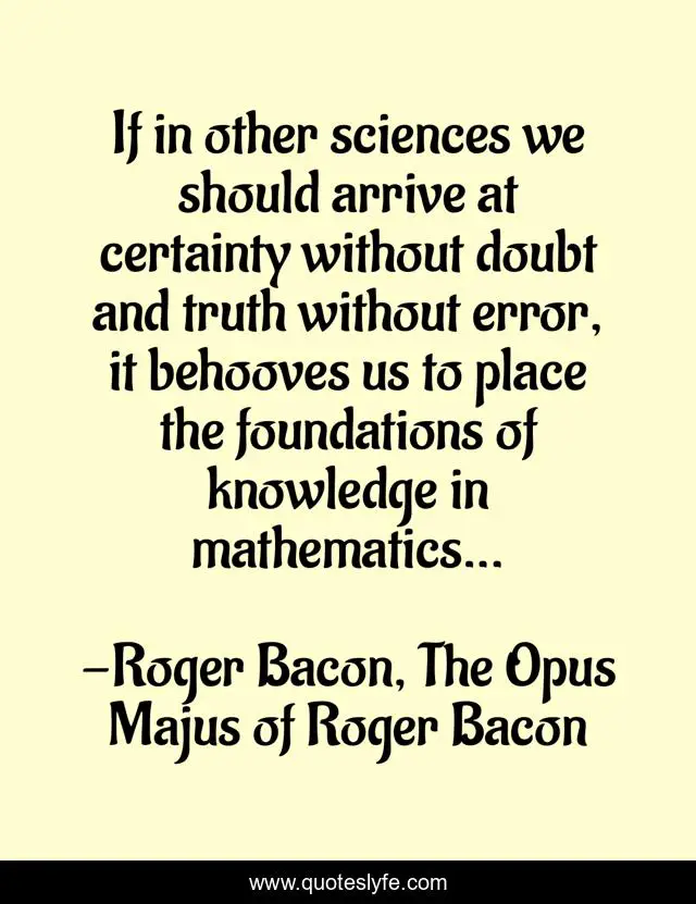 This page presents the quote "If in other sciences we should arrive at certainty without doubt and truth without error, it behooves us to place the foundations of knowledge in mathematics...". Author of this quote is Roger Bacon, The Opus Majus of Roger Bacon. This quote is about science, math,.