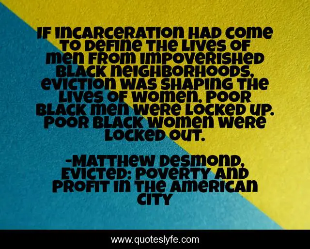 "Matthew Desmond, Evicted: Poverty and Profit in the American City Quotes." Quoteslyfe.com, 2025. Fri. 05 Dec. 2025. <https://www.quoteslyfe.com/quote/If-incarceration-had-come-to-define-the-150462>.